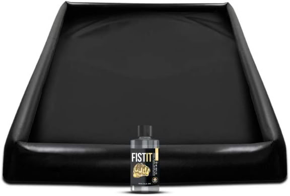 On the subject of piss play accessories why not invest in an inflatable paddling pool, great for containing the flood and having some wonderful slippery fun in, or a dedicated play matt with inflatable sides specially designed for wet and messy play.